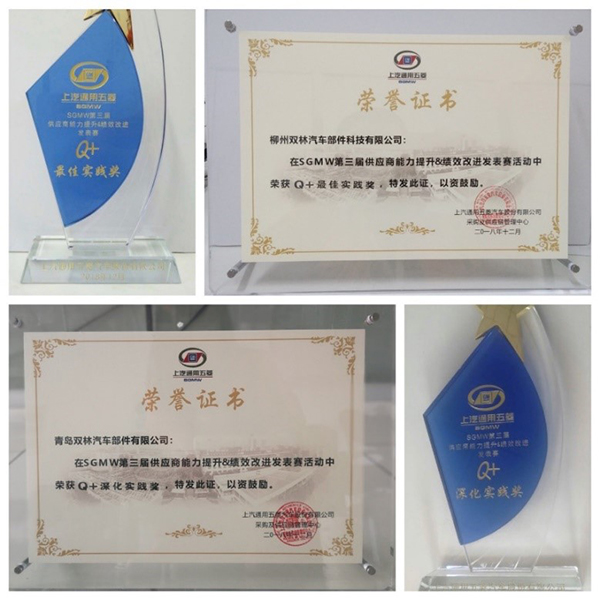 In 2018, Shuanglin implemented lean work in every factory, every post and everyone through each lean improvement activity, having achieved good results and been highly recognized by customers. For example, recently, Liuzhou Factory and Qingdao Factory of Shuanglin won the "Q+ Best Practice Award" and "Q+ Deepening Practice Award" respectively in the "Lean Creates Value, Innovation Leads Future – the Third Presentation Contest for Supplier Capacity Improvement & Continuous Performance Improvement" held by SAIC-GM-Wuling Automobile.